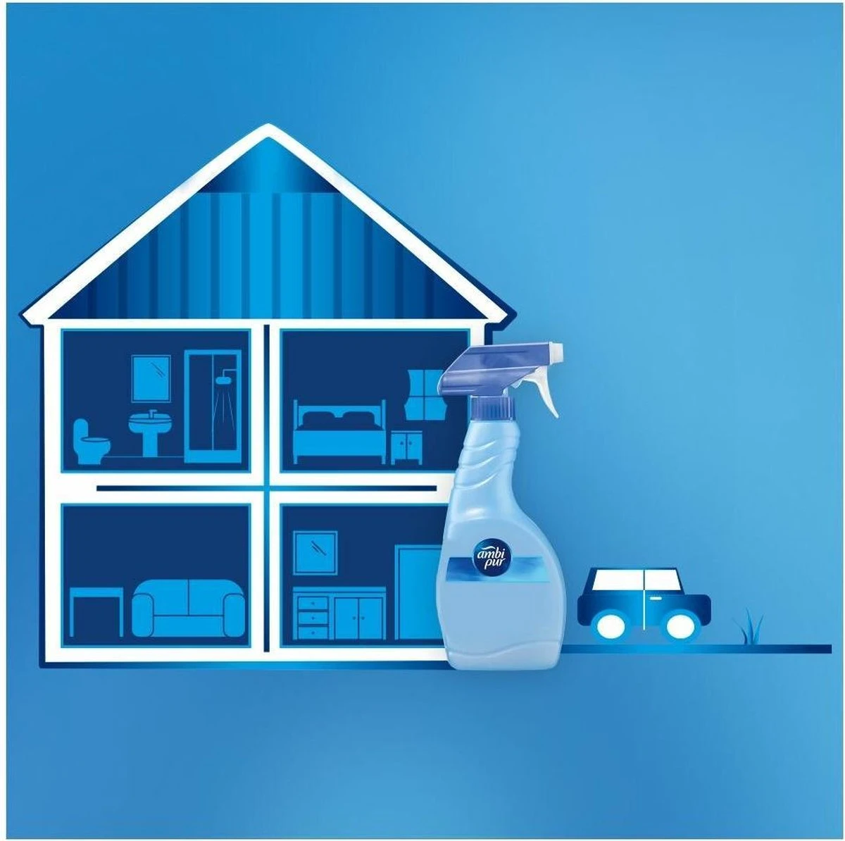 De Ambi Pur textielverfrisser spray met Odourclear-technologie zuivert je textiel van hardnekkige geuren en laat een lichte, frisse geur achter.