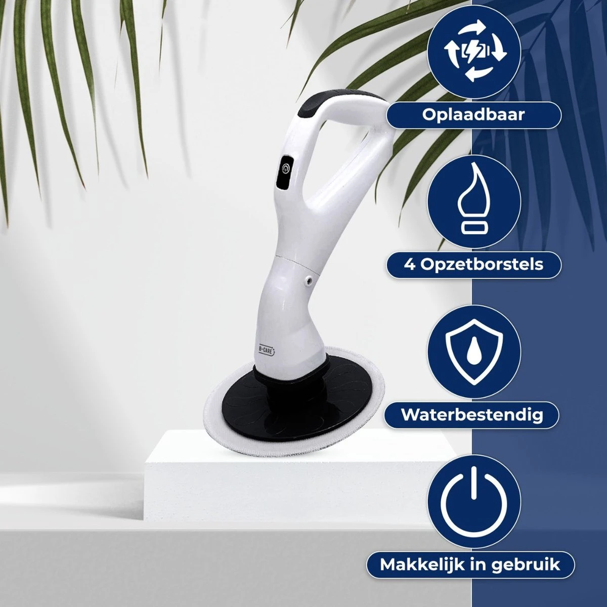 Heeft u ook altijd vlekken op de kraan terwijl u net heeft gepoetst? Bruine aanslag in de wasbak? Bruine voegen tussen de badkamer tegels? Dit is vanaf nu verleden tijd! Met deze multifunctionele wasborstel met maarliefst 4 opzetstukken wordt alles schoner dan schoon. Met z’n krachtige 360° roterende borstel maakt hij alles schoon in een handomdraai. Maak kennis met de B-care Elektrische Multifunctionele Schoonmaakborstel en zeg vaarwel tegen vieze vlekken!